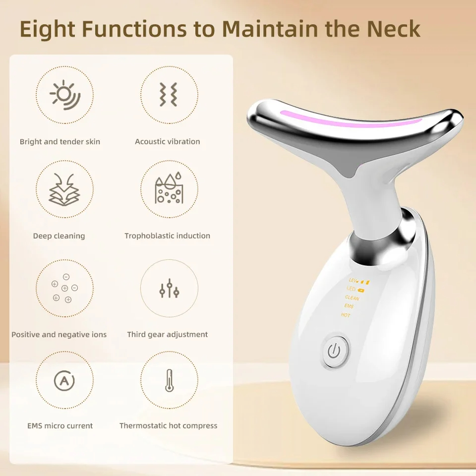 ۳- حالت داغ: گردش خون را افزایش می دهد تا خاصیت ارتجاعی پوست شما را افزایش دهد و سلامت پوست شما را تقویت کند ، در حالی که جذب محصول را تسهیل می کند ، استرس پوست را از بین می برد و بافت پوست شما را بهبود می بخشد. عملکرد نوری دستگاه : رنگ آبی : می تواند پوست شل را سفت کرده و منافذ را کوچک کند که برای پوست های چرب و حساس مفید است رنگ سبز : می تواند با عملکرد متناوب استفاده از اکسیژن سلول را تقویت کند ، میکروسیرکولاسیون سطح پوست را تقویت می کند رنگ قرمز :نشاط سلول را افزایش می د صورت و گردن گردش خون را تسریع کرده و رشد فیبرو بلاست و کلاژن را افزایش می دهد