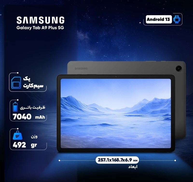تبلت 11 اینچ سامسونگ مدل Galaxy Tab A9 Plus 5G ظرفیت 128 گیگابایت و رم 8 گیگابایت