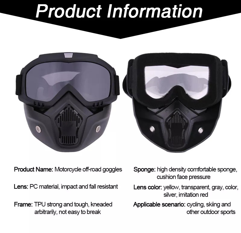 مناسب برای موتورسواری و اسکی و اسکیت میباشد و شیشه عینک به طوری است که با فیلتر کردن رنگ آبی از خستگی چشم در پیست اسکی و کوهستان های برفی جلوگیری میکند عینک و ماسک موتور سواری درجه یک مدل MA 2026 دارای ماسک فیلتر دار و با قابلیت دو تکه شدن هم استفاده به صورت عینک و هم استفاده به صورت عینک و فک مناسب برای تمام فصول و محیط میباشد کناره های داخل عینک ماسک از اسفنج نرم پوشیده شده که مانع از فشار به اطراف چشم میشود و می تواند همراه با کلاه کاسکت های موتورسیکلت بدون فک و بدون شیشه به راحتی استفاده شود