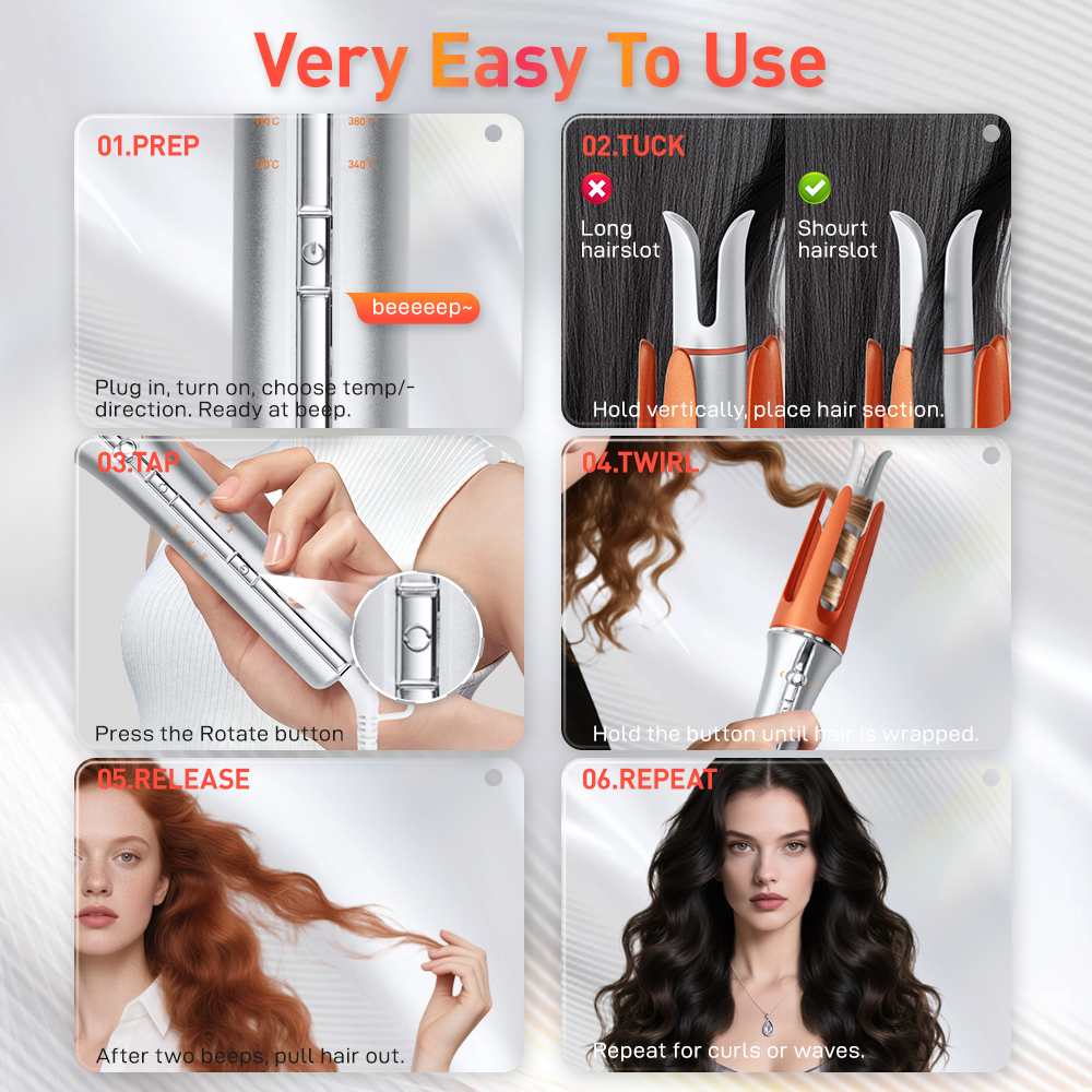4️⃣ دستگاه بهصورت خودکار مو را فر میکند