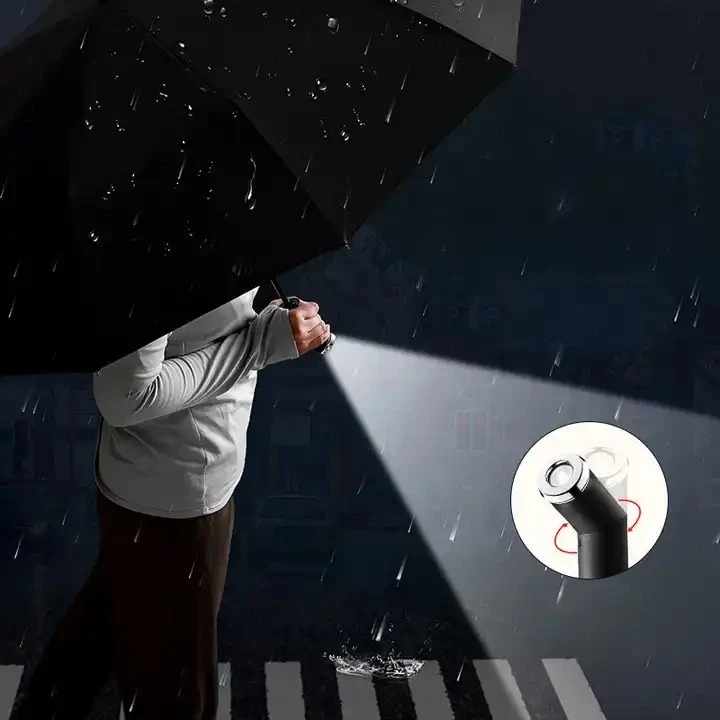 چتر با داشتن یک LED در قسمت زیر دسته یکی از متفاوت‌ترین چترها است. با کمک چراغ تعبیه شده در دسته این چتر، دیگر در تاریکی شب نگران خیس شدن پایتان به دلیل رفتن در گودال های آب باران در کوچه و خیابان نخواهید بود. این چتر با اسکلتی از جنس استیل، یکی از معدود چترهای مستحکم به شمار می رود. جنس ستون و فریم این چتر تماما استیل بوده و متشکل از ۱۰ فنر از جنس فایبرگلاس تقویت شده با فنرهای از جنس استیل است که آن را در مقابل شدیدترین بادها نیز مقاوم میکند. پارچه این چتر از نوع شمعی است که در قسمت داخلی آن روکشی از جنس PVC قرار گرفته و آن را تماما ضدآب میکند. ستون این چتر از نوع تلسکوپی بوده و در حالت بسته ابعاد چتر بسیار است و قابلیت حمل بسیار خوبی دارد. قطر چتر در حالت باز، ۱۰۵ سانتیمتر است و به راحتی برای ۲ نفر پوشش دهی دارد. قسمت انتهایی دسته چتر قابلیت چرخش ۱۸۰ درجه دارد و میتوانید جهت تابش نور را با چرخاندن قسمت انتهایی دسته تنظیم کنید. همچنین یک بند روی دسته چتر برای حمل و نقل راحت تر تعبیه شده است.