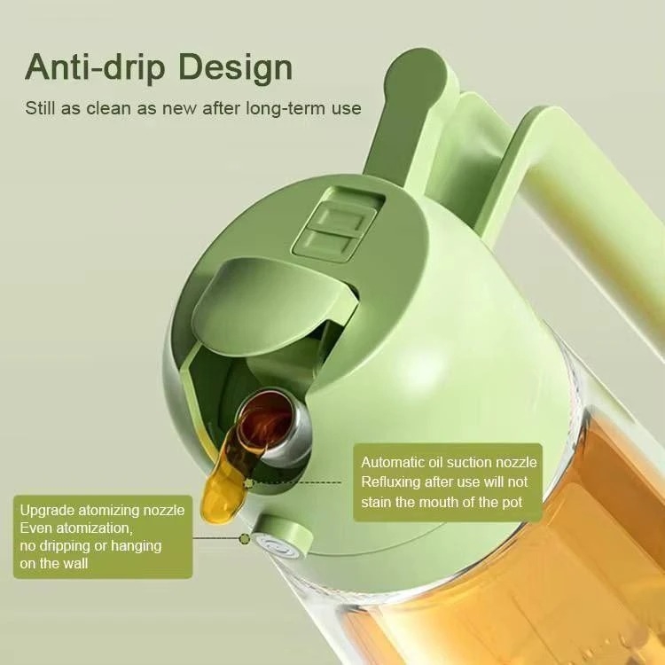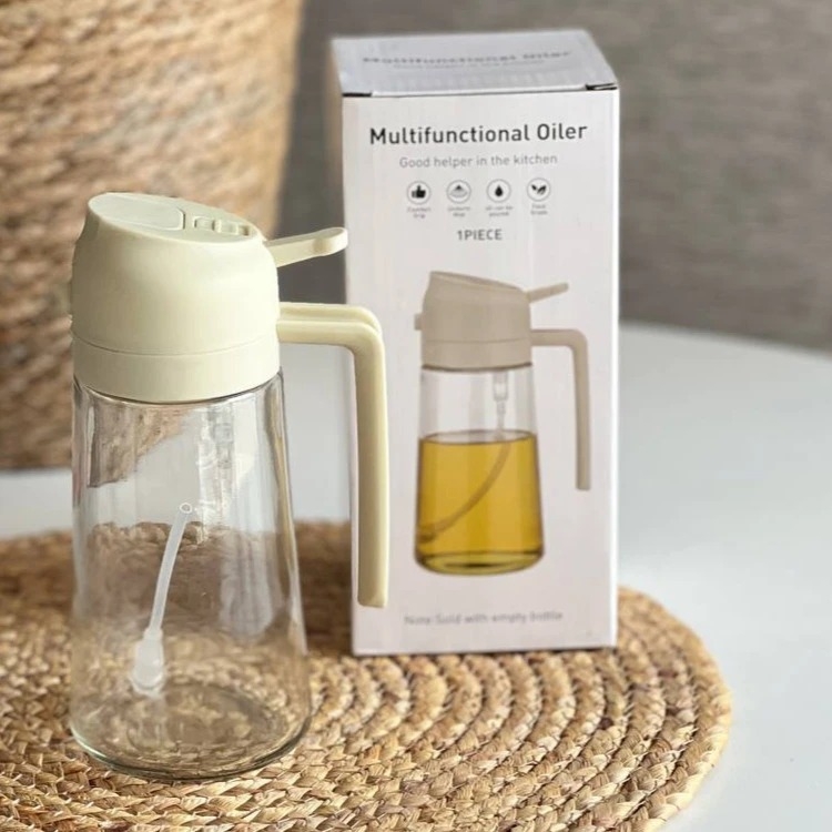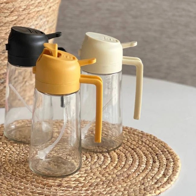 از این محصول میتوان هم به عنوان روغن ریز و هم به صورت اسپری پاش استفاده کرد. درپوش محصول در با اهرمی که روی در تعبیه شده باز میشود. کافی است اهرم را به سمت پایین یکبار بکشیم تا درپوش باز شود. همچنین با اهرم دیگر که مختص اسپری کردن هست روغن یا آبلیمو را اسپری کنید. ارتفاع محصول 18 سانتی متر، قطر کف آن 7.5 سانتی متر و حجم آن 470 میلی لیتر می باشد